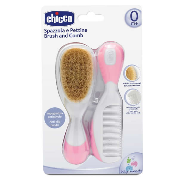 Chicco Brush and Comb Natural Hair Rose 0m+