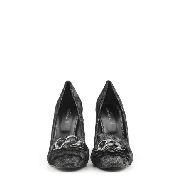 – Women’s pump, fringes and chain, iridescent effect