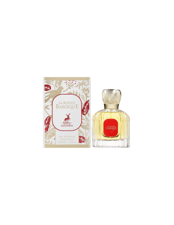 Maison Alhambra La Rouge Baroque Eau de Parfum is a unisex fragrance that embodies elegance and sophistication. The scent opens with captivating top notes of jasmine grandiflorum from Egypt and saffron, creating a luxurious and alluring introduction. The heart reveals a rich blend of bitter almond from Morocco and cedarwood, adding depth and warmth. Finally, the fragrance settles into a base of woody musk accords and ambergris, leaving a sensual and lasting impression. Perfect for those who appreciate a harmonious blend of floral, woody, and musky notes, La Rouge Baroque is a versatile and timeless choice for any occasion.