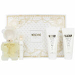 Moschino Toy 2 Eau De Parfum Spray 100ml Set 4 Pieces is a playful, sophisticated fragrance designed for women who love fun and elegance. It opens with fresh fruity notes of pear and blackcurrant, followed by a heart of delicate rose, iris, and peony, creating a vibrant and floral aroma. The base features cashmere wood, vanilla, and white musk, leaving a long-lasting, warm, and elegant trail. This set of four provides a complete gifting solution or ensures you always have your signature scent on hand.